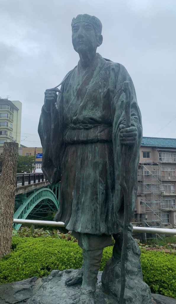飯坂温泉の駅前には、旅の大先生松尾芭蕉の銅像も飾っていました。